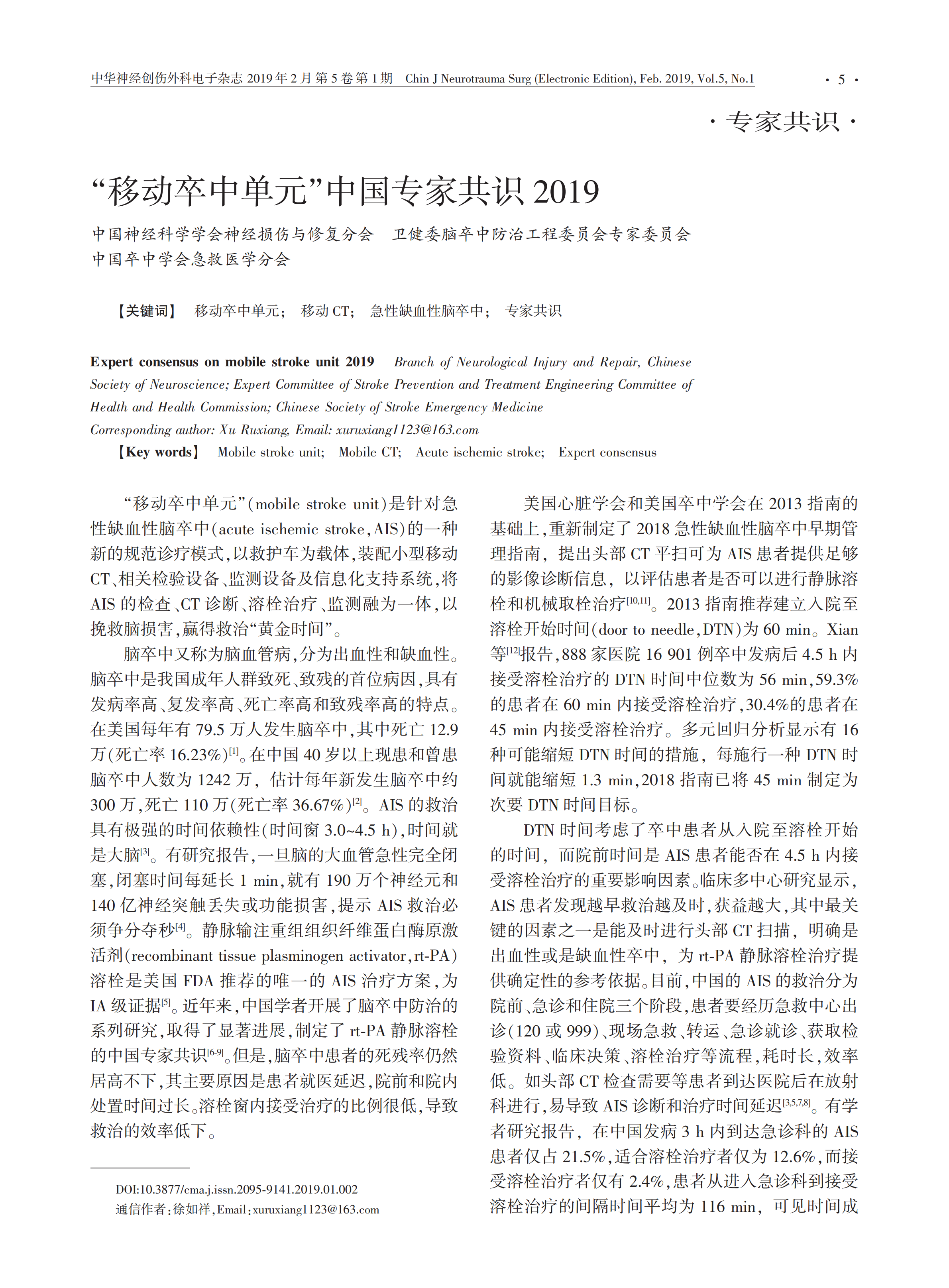 【蘇肽生】2019“移動卒中單元”中國專家共識