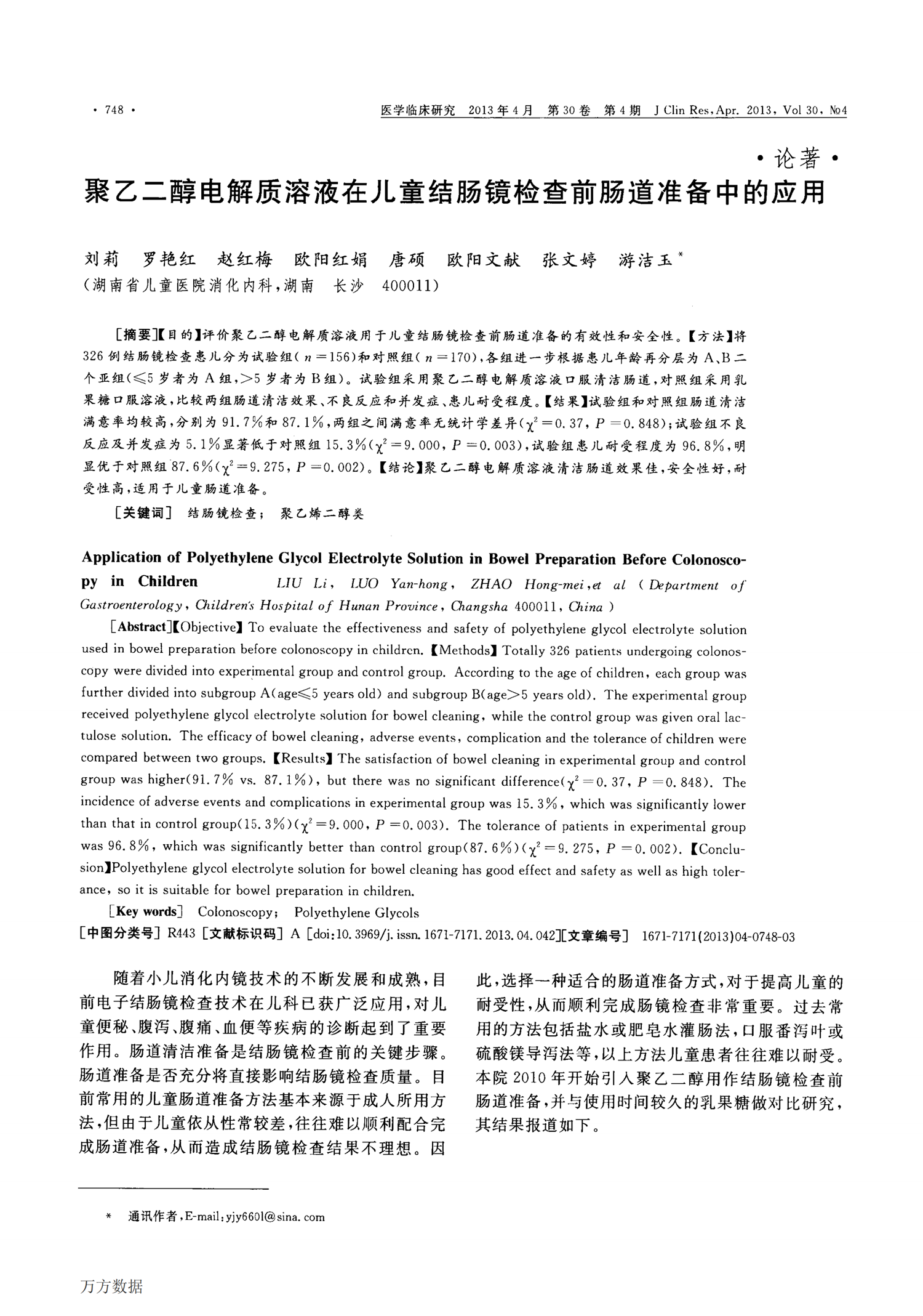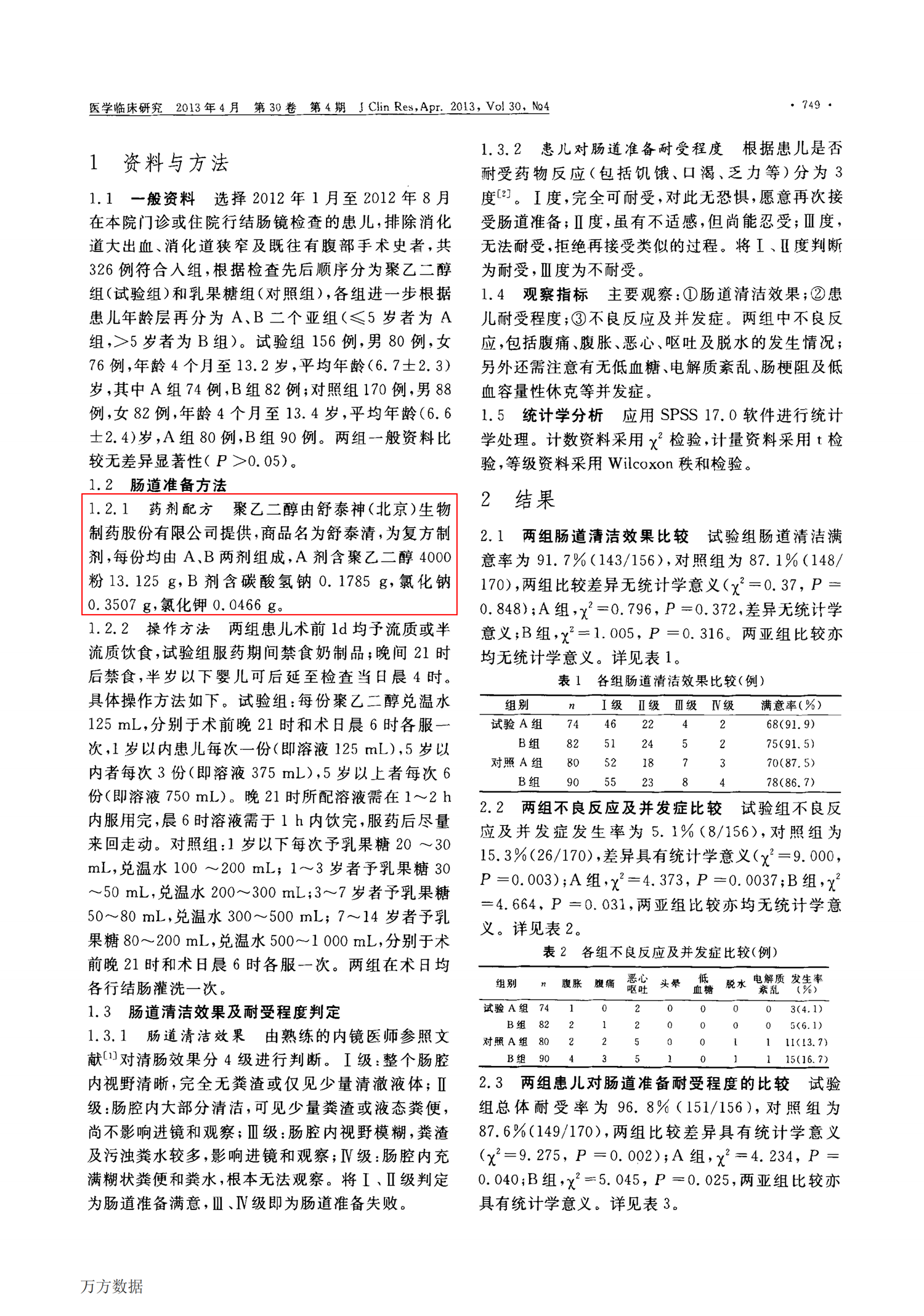 【舒泰清】2013 聚乙二醇電解質(zhì)溶液在兒童結(jié)腸鏡檢查前腸道準備中的應(yīng)用